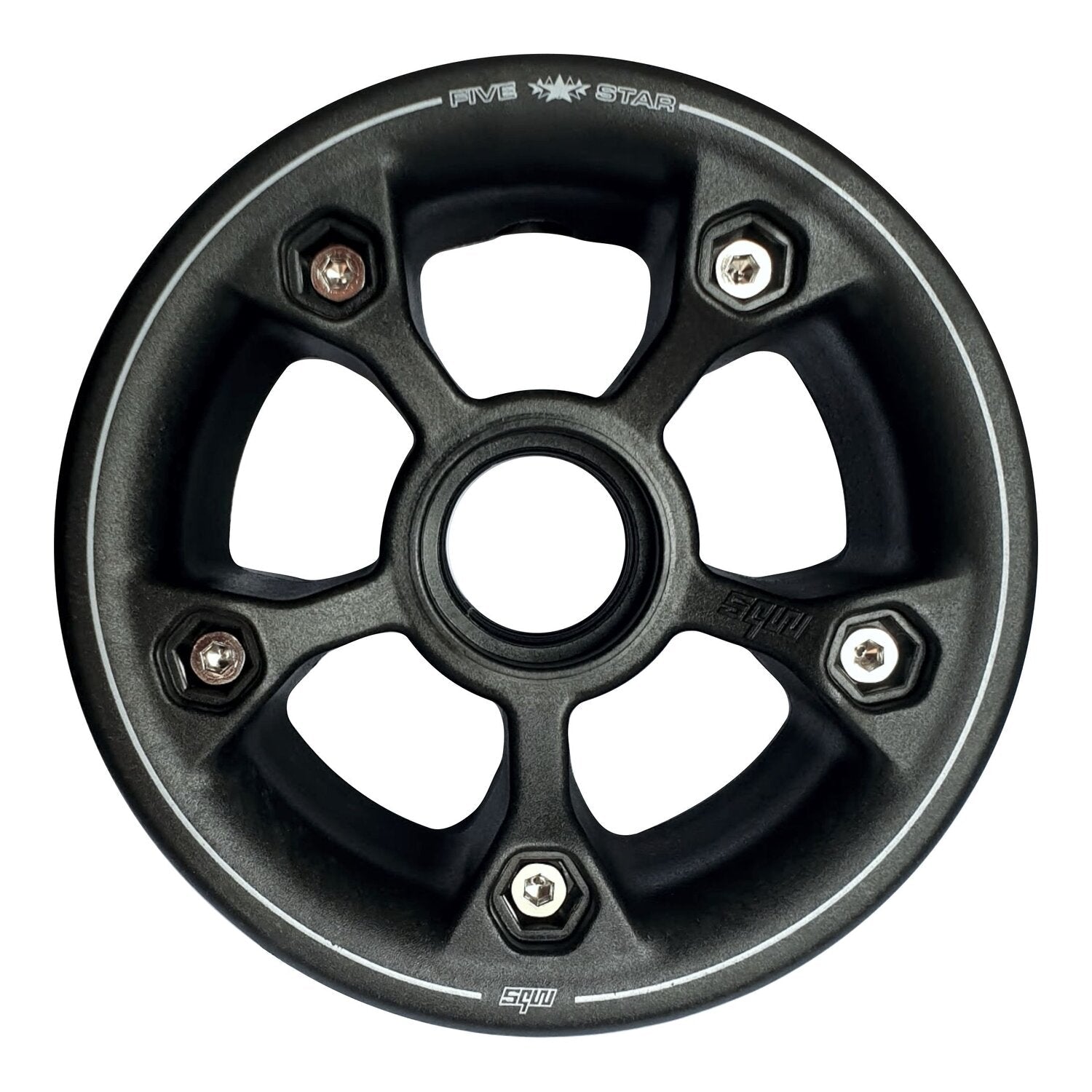When designing the FiveStar hub, MBS took the successful RockStar II hub design and tweaked it to work with both 8" and 9" tires by adding a second internal rim lip. By increasing wall thicknesses slightly MBS was able to use a lighter and slightly more economical impact-modified hub material which has proven to be a perfect match for this versatile general-purpose hub. Maximum recommended tire pressure is 50 psi. Riders wanting to ride higher pressures should look the Rock Star II or Rock Star Pro hubs.